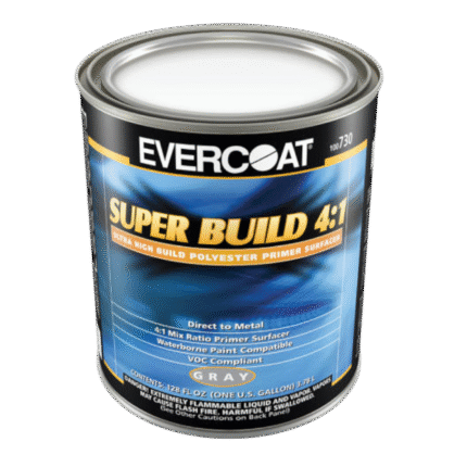 Evercoat Super Build 4:1 Polyester Primer Surfacer is a high-build, two-component hybrid polyester-epoxy primer engineered for maximum filling power, superior adhesion, and long-lasting corrosion resistance. Designed for fiberglass, SMC, bare metal, aluminum, rigid plastics, and body fillers, it delivers outstanding stability on even the most troublesome repairs. Featuring Evercoat’s patented 4:1 mix ratio technology, Super Build 4:1 passes 500-hour ASTM B117 salt spray testing, ensuring exceptional durability.