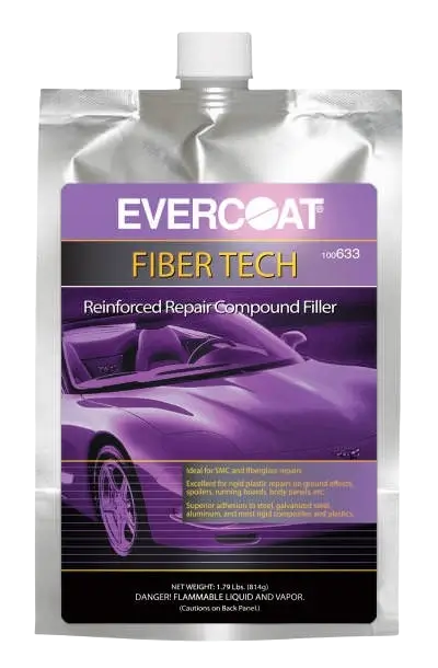 Evercoat FIBER TECH® Reinforced Repair Compound is a high-strength Kevlar®-reinforced filler designed for structural repairs on SMC, fiberglass, aluminum, steel, rigid plastics, and welded areas. Its blend of long-strand and short-strand fibers delivers maximum durability, superior adhesion, and a fully waterproof finish, making it ideal for repairing ground effects, spoilers, fenders, running boards, hoods, weld seams, and rust damage.