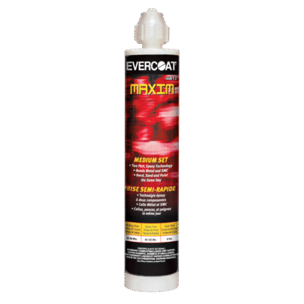 Evercoat MAXIM™ Medium Set Bonding Adhesive is a professional 1:1 epoxy adhesive designed for high-strength, non-structural panel bonding. Ideal for replacing door skins, roofs, quarter panels, truck bedsides, and utility vehicle sides, it delivers excellent adhesion to steel, aluminum, e-coats, SMC, fiberglass, and plastics. Its glass-bead–reinforced formula ensures proper bond-line thickness, while corrosion-resistant properties support long-term durability. With smooth gunability in hot or cold temperatures and a medium working time for precise alignment, technicians can bond, sand, and paint the same day. Backed by Evercoat’s lifetime warranty for confidence and reliability.